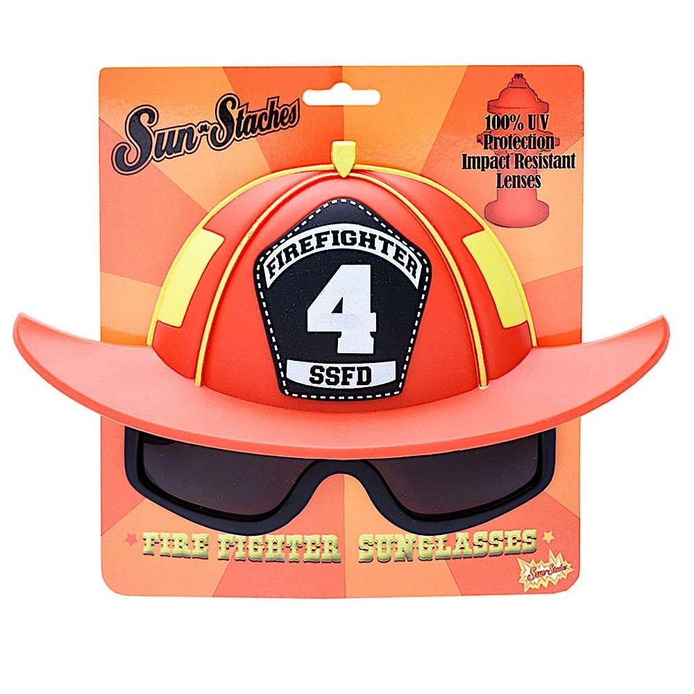 Turn up the heat with a pair of Fireman Sunglasses. Featuring a fashionable red and yellow fire fighter hat, now you can join the Sun-Staches’ Fire Department and protect the city. Fun sunglasses for fire fighting gifts and the finishing touch for any fireman costume. 100% UV protection and impact resistant lenses might not stop an actual fire, but they’ll keep your eyes safe from harsh UV rays! 🚒