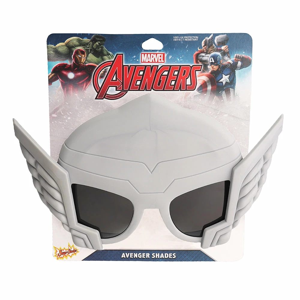 Avengers Assemble! Wear the iconic winged helmet and become the God of Thunder with our amazing, Thor Sun-Staches. You may not be able to call down thunder from the heavens, but with these Sun-Staches, you’re sure to take an electric selfie. Complete with his iconic winged Asgardian war helm these stylish shades are ready for battle. Great for Marvel fans of all ages and made for fun in the sun. These aren’t just sunglasses, they’re Sun-Staches!