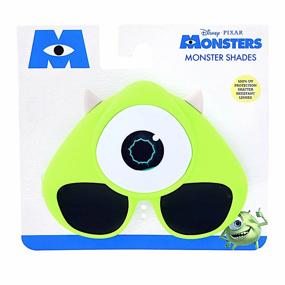 Get a scream or a laugh in a pair of Mike Wazowski Sun-Staches. Team up with Sully and be employee of the month at Monsters Inc. These pair of scare-ware features Mike’s bike round eye and green face with horns. Complete with UV protective lenses so you can get your scare on dar or night! Fun for all ages and occasions. These aren’t just sunglasses, they’re Sun-Staches!