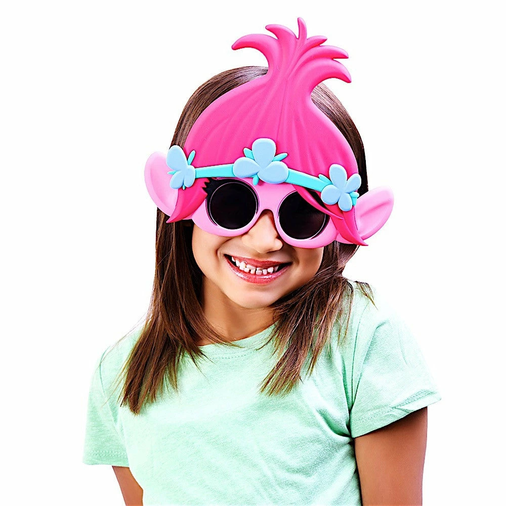 Be the upbeat Troll who can loves to sing and dance with a pair of our Trolls Poppy Sun-Staches! Spread friendship and joy with with these trendy troll shades and get the party started with Poppy. Featuring her tall pink hair and a cute flower tiara, these stylish shades come with UV400 protective lenses and were made for having fun in the sun. Great for all ages and occasions. These aren’t just sunglasses, they’re Sun-Staches!