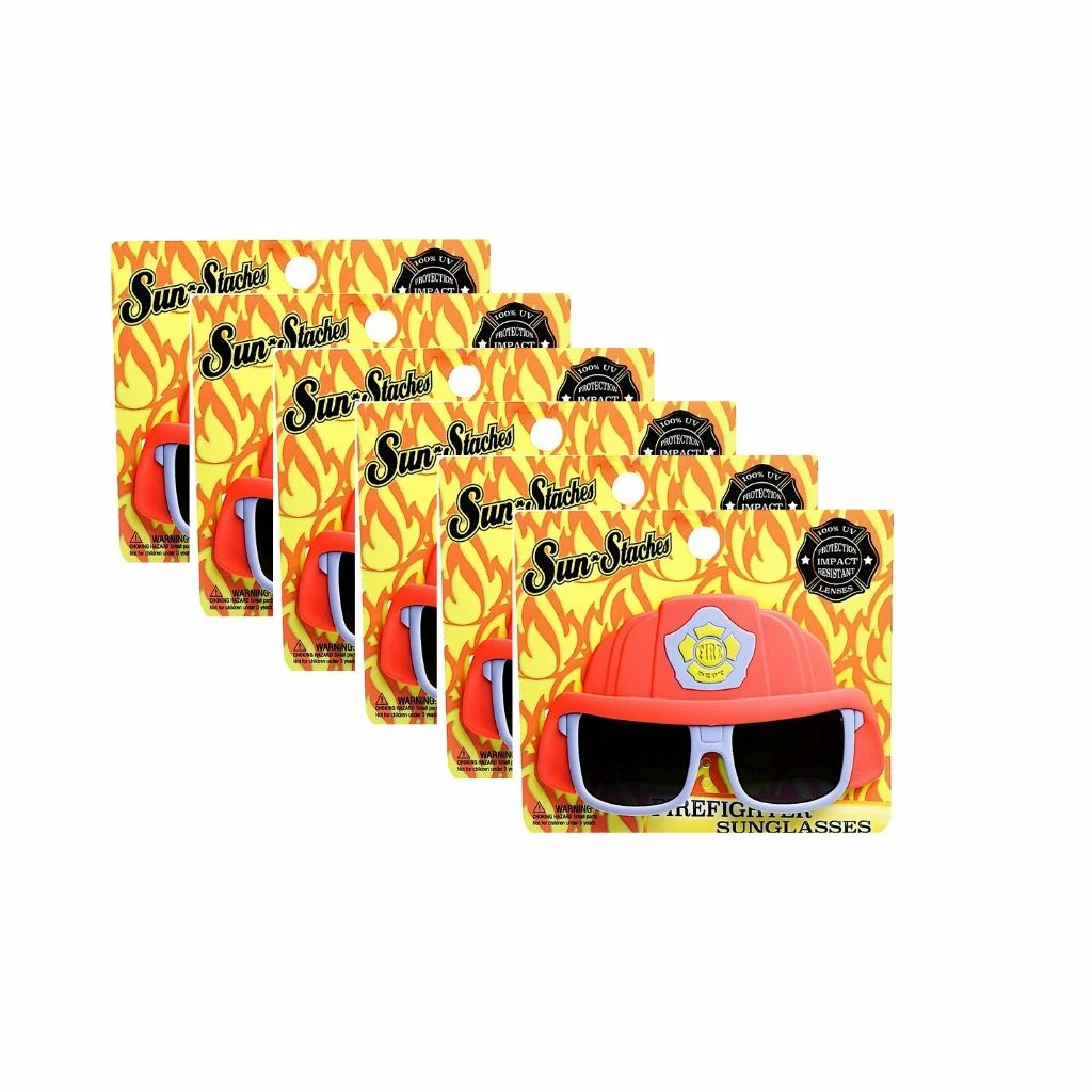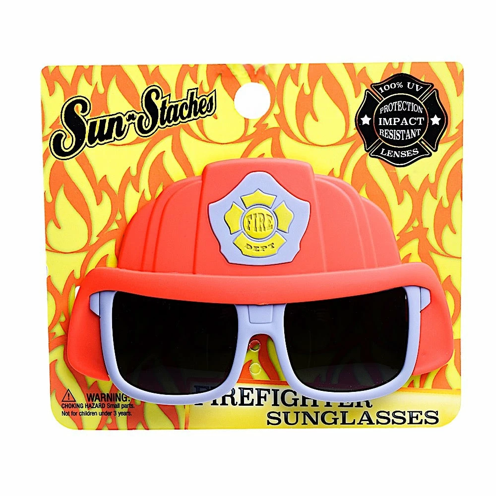 Turn up the heat with a pair of Fire Fighter Lil’ Characters Sun-Staches. Battle fires and save the day in style with these while keeping your cool. Featuring the red helmet and firefighter badge, these shades are made for fun in the sun. They aren’t just sunglasses, they’re Sun-Staches!