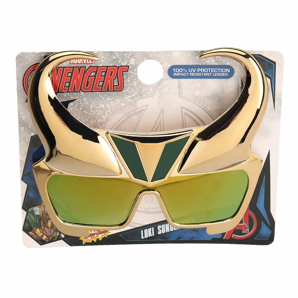 Become the Prince of Asgard and use your cunning to get a pair of Lil’ Characters Loki Sun-Staches. Featuring is royal Asgardian horned crown on a gold and green frame. Complete with UV400 protective lenses, these are not only the most stylish pair of eyewear but also the most powerful in the multiverse. Get your little prince the the ultimate gift for young Marvel fans. These aren’t just sunglasses, they’re Sun-Staches!