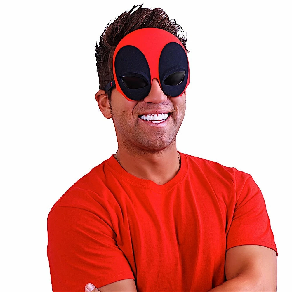 Become the ultimate merc with the mouth in our Deadpool Sun-Staches. Become the coolest Marvel anti-hero around and kick butt in while rocking Deadpool’s signature red and black mask. Break the 4th wall in style and be the life of the party while keeping your eyes safe. Complete with UV400 protective and impact resistant lenses, these shades were made to take a beating and keep going. Perfect for heroes and villains of all ages and made for fun in the sun. These aren’t just sunglasses, they’re Sun-Staches!