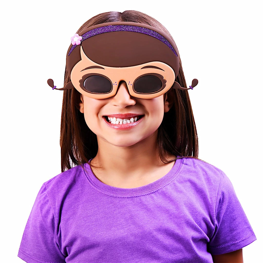 Fix anything with your fellow stuffed animal friends with our Doc McStuffins Sun-Staches. Featuring her purple glitter hair band and pigtails this pair of adorable eyewear can heal any frown. Complete with UV400 protective lenses these stylish shades are great for protecting your eyes outside. Heal your boredom with no side effects other than severe case fun in the sun. Great for all ages and occasions. These aren’t just sunglasses, they’re Sun-Staches!