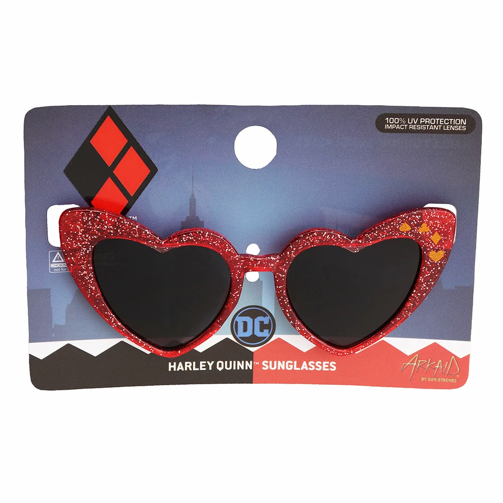 Become the Queen of Crime in Gotham with a pair of Harley Quinn sunglasses. Featuring a glittery red design that is equal parts cute and crazy. Complete with UV protective lenses and made for fun in the sun, these are perfect for comic book fans of all ages. Whether you’re a supervillain or superhero, you’re gonna look great with a new pair of entertaining eyewear. These aren’t just sunglasses, they’re Sun-Staches!