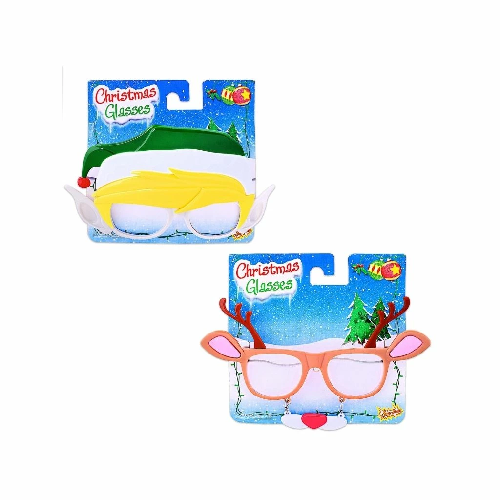 Get ready for the holidays with the Sun-Staches Holiday Clear Lens Pack. Featuring the Elf and Reindeer shades this gift of entertaining eyewear is sure to bring holiday cheer to all. These Snowman Sunglasses are the coolest shades you’ll find this holiday season. Complete with UV400 protective lenses, these holiday-themed shades are fashionable, functional and perfect for Christmas gifts or Christmas party supplies. Impact resistant lenses offer additional protection in case of snowball fights. ⛄