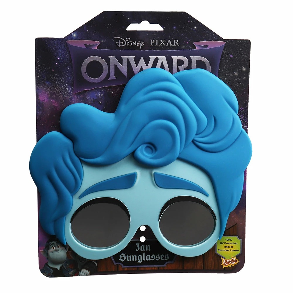 Master your magic skills and look confident in a pair of Ian Lightfoot Sun-Staches. Become the awkward brother from Onward with this snazzy pair of sunglasses. Featuring his blue hair on light blue frames, these are perfect for casting some spells in style. Great for all ages and occasions. These aren’t just sunglasses, they’re Sun-Staches!
