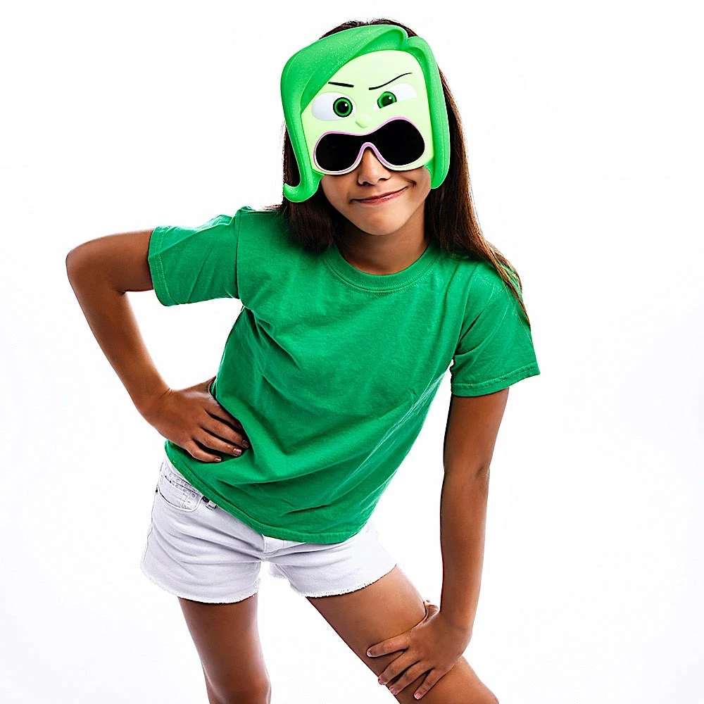 Make everyone else green with envy when they see you in a pair of Disgust Sun-Staches. From the hit Pixar movie Inside Out, now you an roll your eyes in style with these fun frames. Featuring her angry eyes and bright green hair, you’ll be ready to let everyone know how you feel. Great for all ages and made for fun in the sun. These aren’t just sunglasses, they’re Sun-Staches!