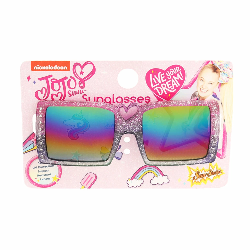 Be the ultimate Siwanator in a pair of your own JoJo Siwa Diva Heart Sun-Staches. These rhinestone-studded frames are totally chic and the perfect accessory for the Jojo fan in your life. Dance to your own tune while keeping your eyes safe with UV protective lenses so you can have fun in the sun. These aren’t just sunglasses, they’re Sun-Staches!