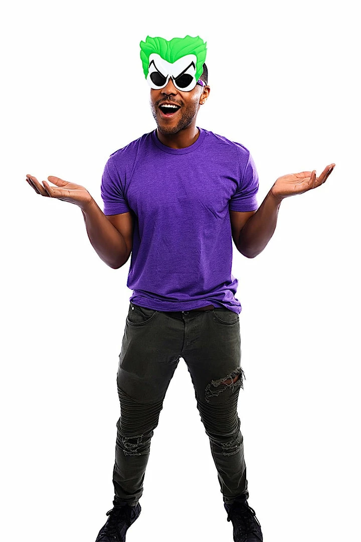 Let’s put a smile on that face with a pair of Joker Icon Sun-Staches! Our Joker Sun-Staches are modeled after the madness of our most iconic villain yet. Why so serious? Be the life of the party and make the crowds laugh like they just took a breath of Joker Venom. Have a laugh with Sun-Staches!