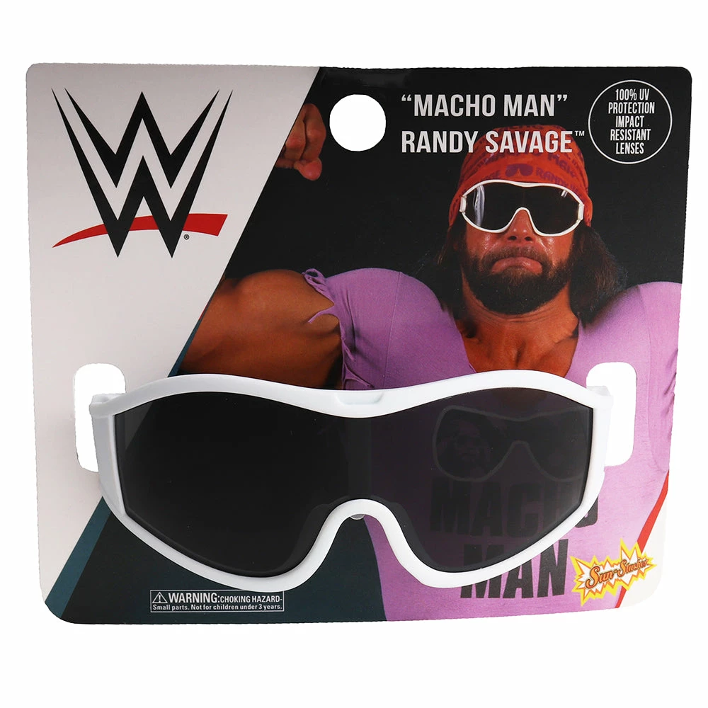 Step into the ring with some Macho Man Randy Savage Lil’ Characters Sun-Staches. Use your Flying Elbow Drop to finish off your opponents and win that WWE champion’s title and belt. With impact resistant lenses and a stylish white frame these shades look great both in the ring and well as fun everyday eyewear. Perfect for young wrestling fans and made for fun in the sun. They’re not just sunglasses, they’re Sun-Staches!