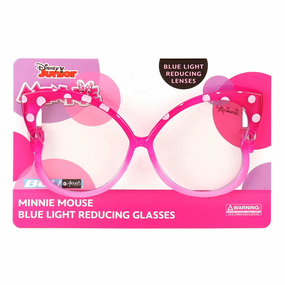 Have the cutest pair of eyewear in the whole Disney Kingdom with a pair of Minnie Mouse Pink Butterfly Blue Light Blocking Glasses. Our blue light blocking lenses filter out harmful blue light that comes from mobile phones, TV’s, computers, and video gaming that causes visual fatigue and difficulty sleeping. Theses stylish shades feature an adorable pink polka dot design on butterfly shaped frames for the perfect pair of Disney eyewear. Great for all occasions from watching movies on the big scree to playing mobile games on the little screen. Make screen time safer with Sun-Staches!