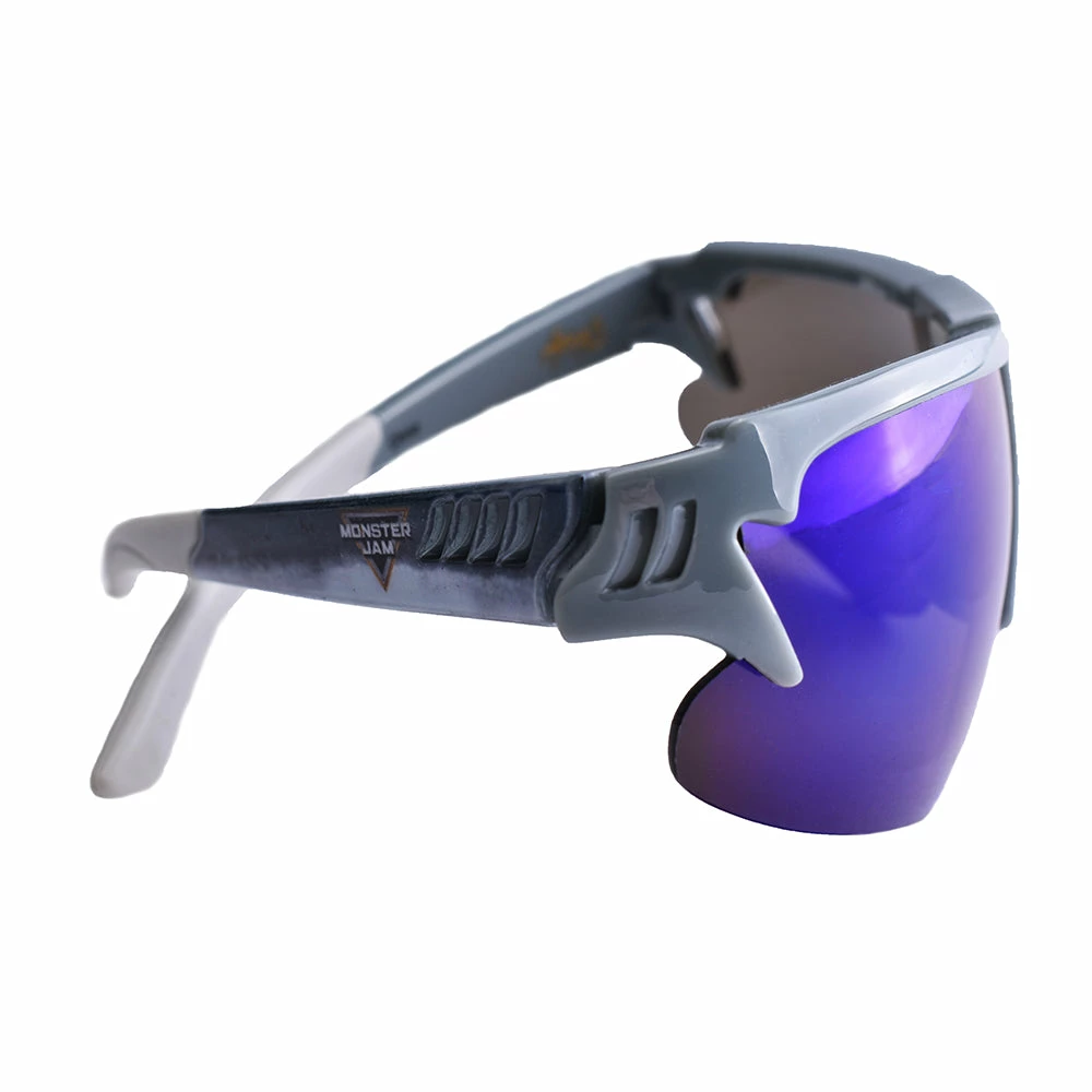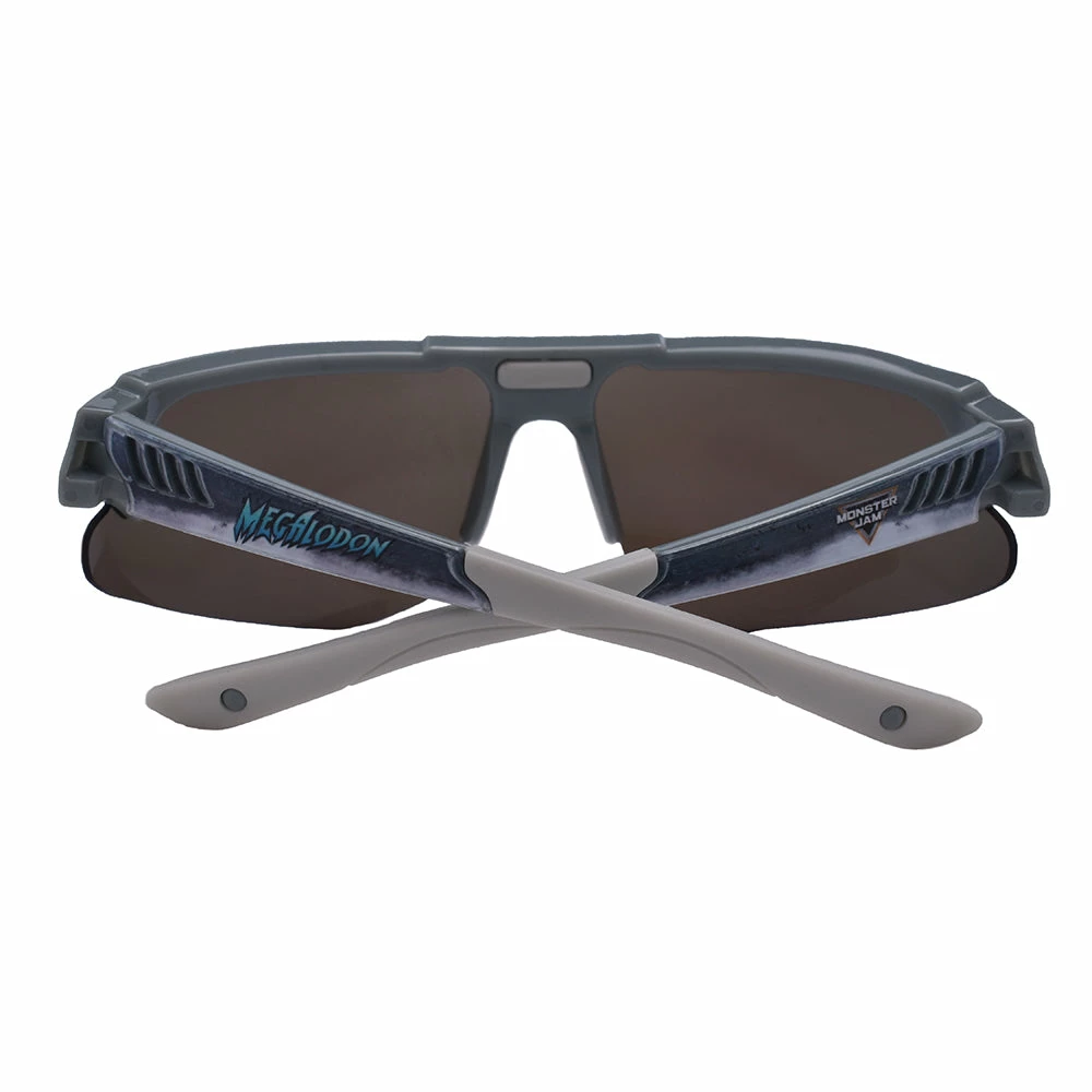 Get ready to roll in a pair of Monster Jam Megalodon Kids Sunglasses by Arkaid. Featuring some gray shark fin frames and cool blue lenses you’ll be ready to tear up the competition in style. These are perfect for young Monster Jam fans and are made for fun in the sun with UV400 protective lenses. Whether you’re tearing up the track or wrenching in the garage you’re gonna look great in some entertaining eyewear. These aren’t just sunglasses, they’re Sun-Staches!