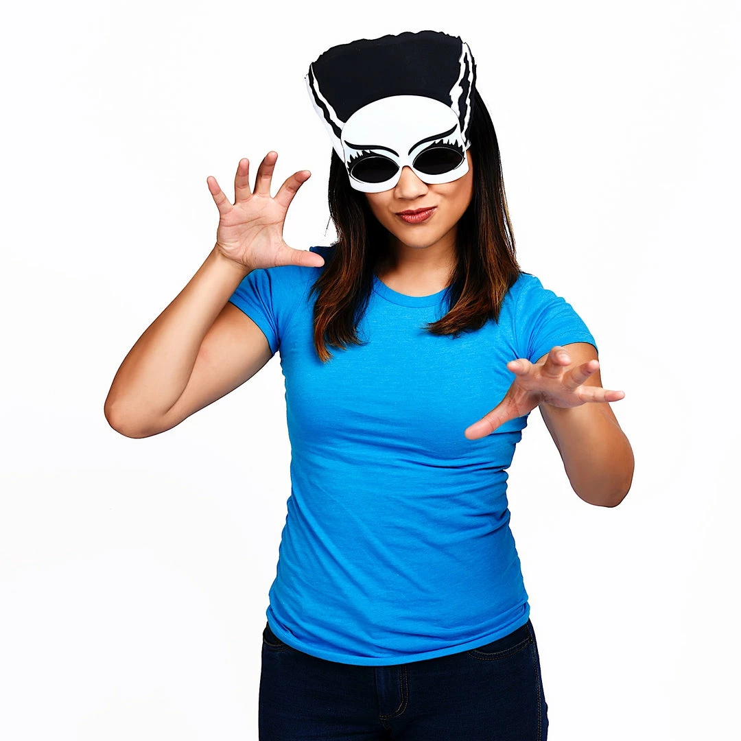 Get ready for a scary good time with these Monsters The Bride of Frankenstein Sun-Staches! With a streaks of white in her hair and cute eyelashes on these fun frames, these spooky shades are based on the classic Hollywood film are sure to bring the scares to the party. Whether you’re putting together the perfect couple’s costume or partying loud enough to wake the dead, you’re gonna look great with a pair of entertaining eyewear. Great for all ages and made for fun in the sun. These aren’t just sunglasses, they’re Sun-Staches!