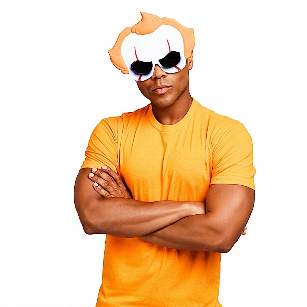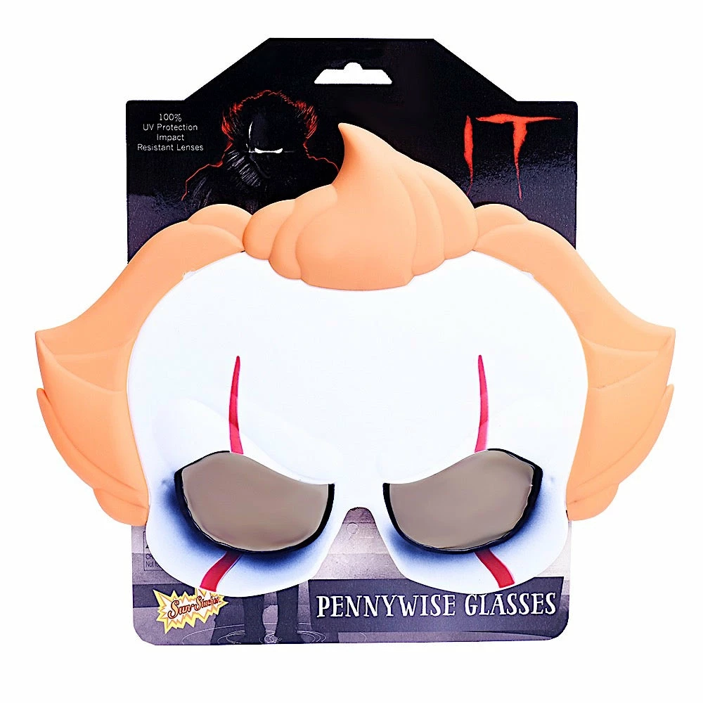 In the market for a new look? Why not try being an ancient evil, shape-shifting, bloodthirsty clown that lives in a sewer? Have the whole neighborhood screaming with a pair of Pennywise IT Sun-Staches. Featuring this killer clown’s bright orange hair and evil clown makeup, these are sure to feed the fears of everyone you run into. Fun for all ages and made for fun in the sun. These aren’t just sunglasses, they’re Sun-Staches!