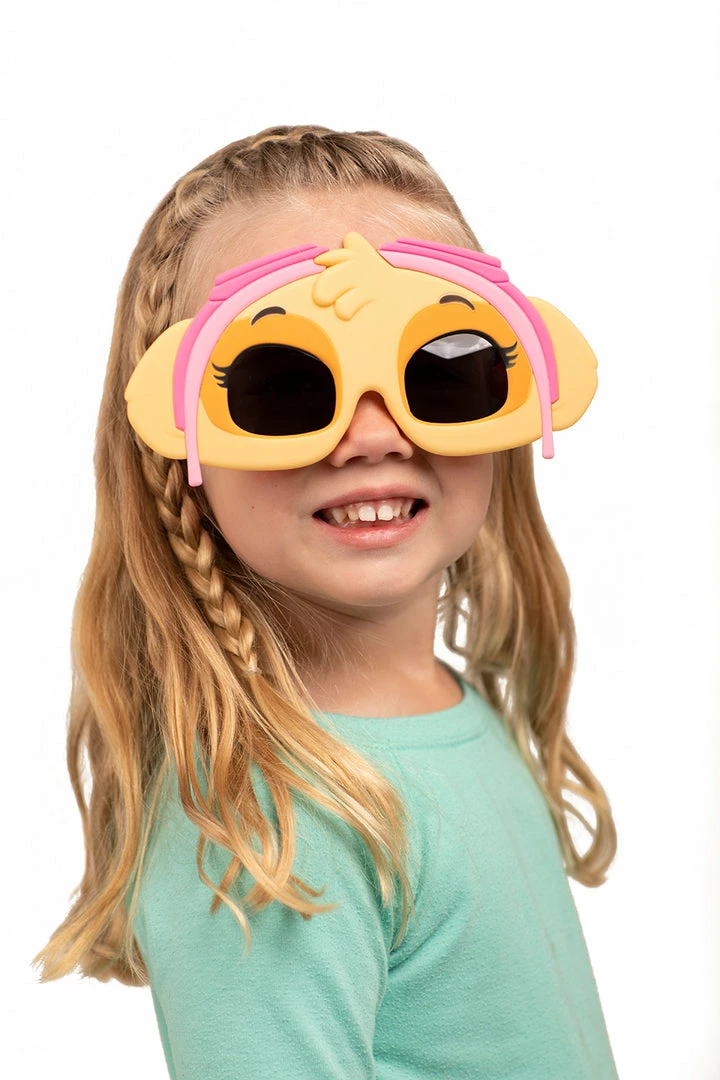 Be the ultimate eye in the Skye with a pair of Paw Patrol Skye Lil’ Characters Sun-Staches! Featuring her pink aviation goggles and clever Cocker Spaniel / Poodle mix is here to show off her aerial stunts. Join the rest of the Paw Patrol team and soar to new heights with a pair of Sun-Staches. Perfect for young pups and fun for all occasions. These aren’t just sunglasses, they’re Sun-Staches!