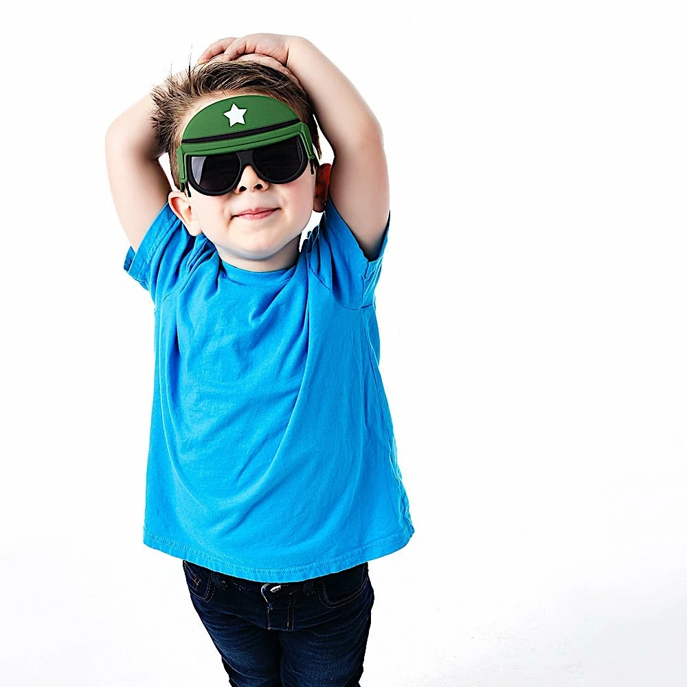 Battle your way to victory with the Lil’ Characters Soldier Helmet Sun-Staches. Your little soldier will have the perfect accessory to complete the combat look with these stylized shades. Anyone who doesn’t think these are the coolest way to have fun in the sun better drop down and give me twenty!