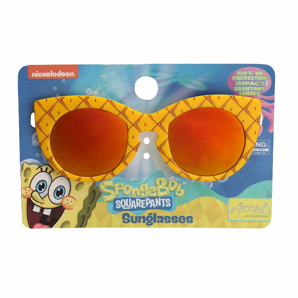 Become the happiest sponge living in a pineapple under the sea with a pair of Spongebob Sunglasses by Arkaid. Buddy up with Patrick Star and Sandy and thwart Plankton’s diabolical plans to steal the Krabby Patty secret formula. Soak up all the fun with these stylish shades with a pineapple style frame and aqua blue arms. Keep your eyes safe with UV protective lenses so you can keep having fun in the sun. Fun for all ages and great for every occasion from the beach party to everyday eyewear.