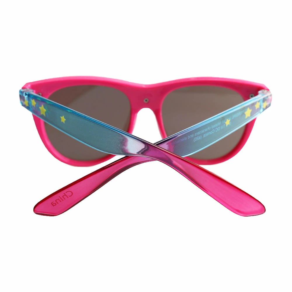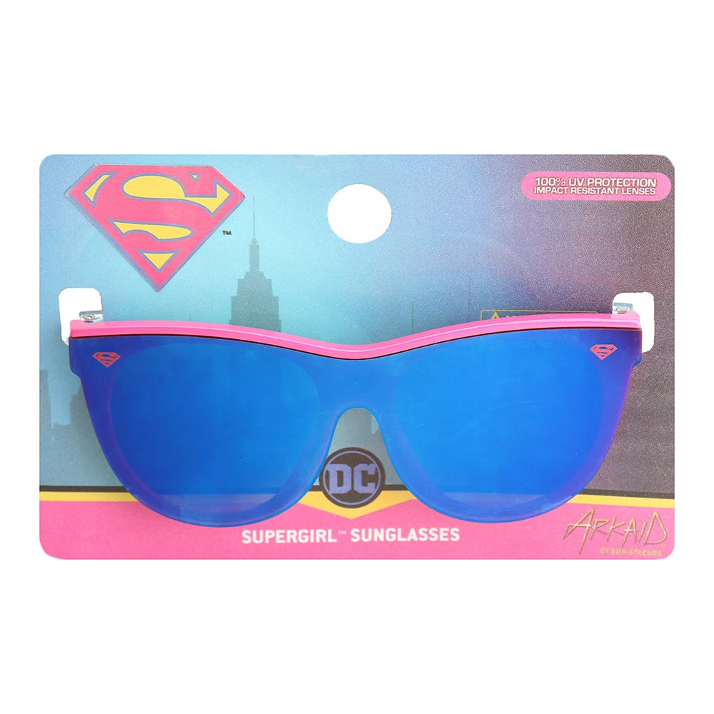 Save the planet in style in a pair of DC Supergirl Rimless Sunglasses by Arkaid. Become the Girl of Steel with a fashionable purple and pink frame with blue transparent arms adorned with stars. Complete with UV400 protective and impact resistant lenses these are the ultimate shades for any young superhero. Practice your planet-splitting right hook with the epic new eyewear. These aren’t just sunglasses, they’re Sun-Staches!