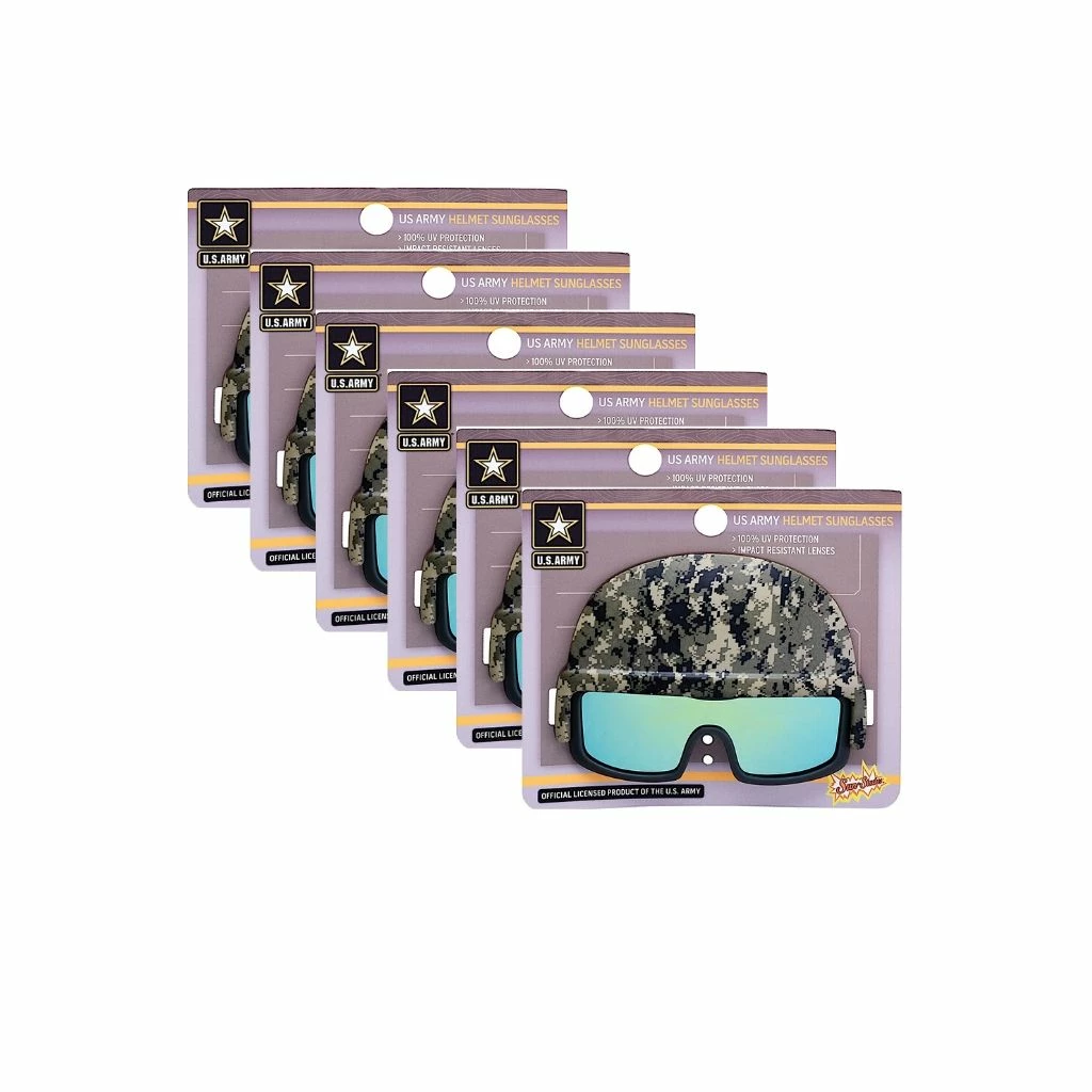 Be prepared for anything in a pair of U.S. Army Helmet Lil’ Characters Sun-Staches. Officially licensed by the United States Army, these stylized spectacles feature the digital camouflage pattern of the the U.S. Army Soldier. UV Protection and impact resistant lenses. This pair of entertaining eyewear is standard issue apparel for every situation you may come across from the costume party to the PT field. Anyone who doesn’t think these are the coolest way to have fun in the sun better drop down and give me twenty. Fun for young cadets and made for fun in the sun. These aren’t just sunglasses, they’re Sun-Staches!