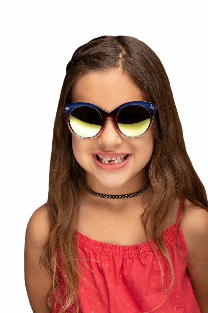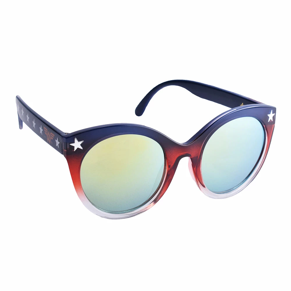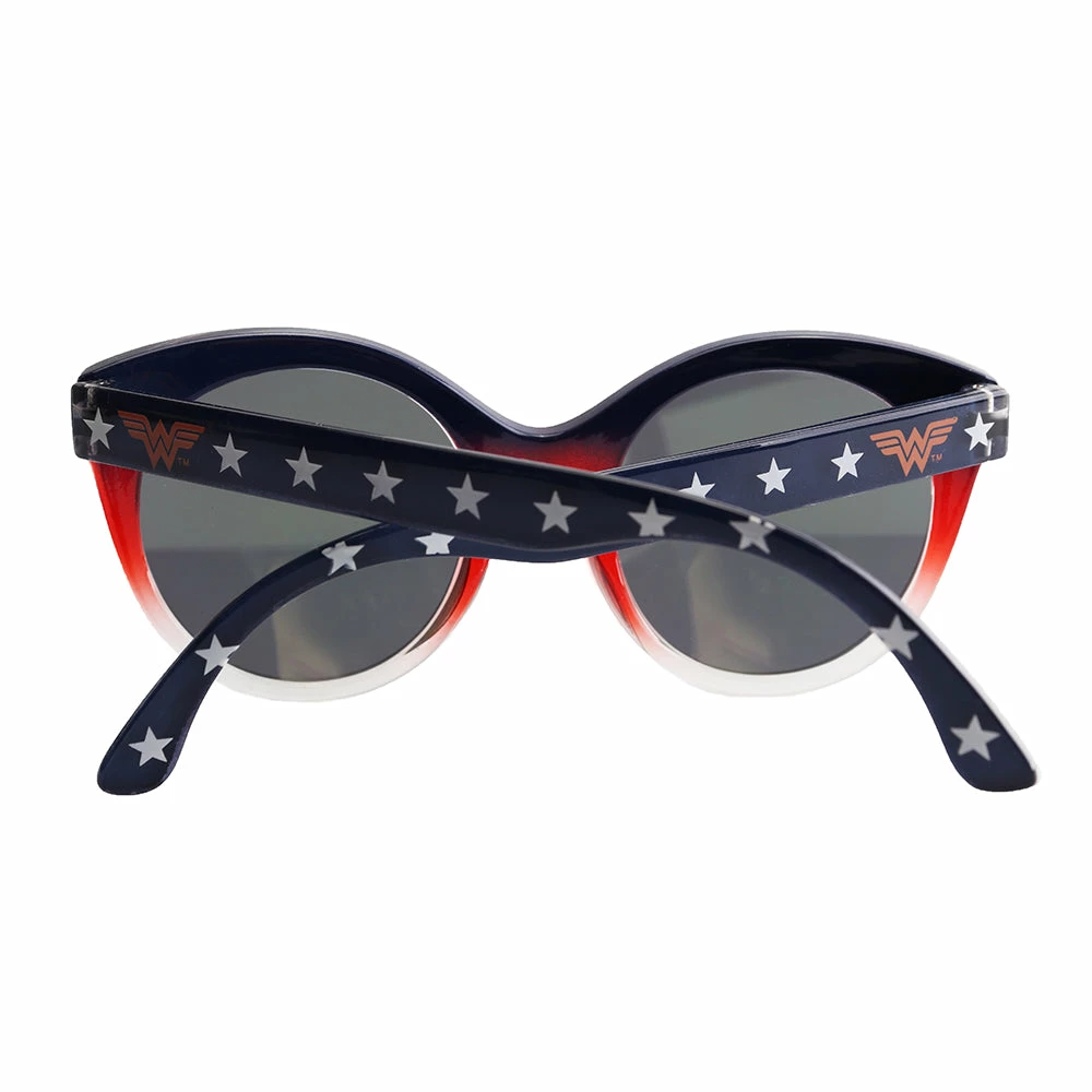 Become the fierce Amazonian warrior and fight crime in style with a pair of Wonder Woman Red White and Blue Kids Sunglasses by Arkaid. These stylish shades feature a brilliant red, white, and blue frame with stars on the arms. Be the most fashionable super-heroine in the DC Comics universe. Complete with UV protective and impact resistant lenses these are the ultimate accessory for saving the world in style. Perfect for young superheroes-in-training and made for fun in the sun. Have it made in the shade with Arkaid!