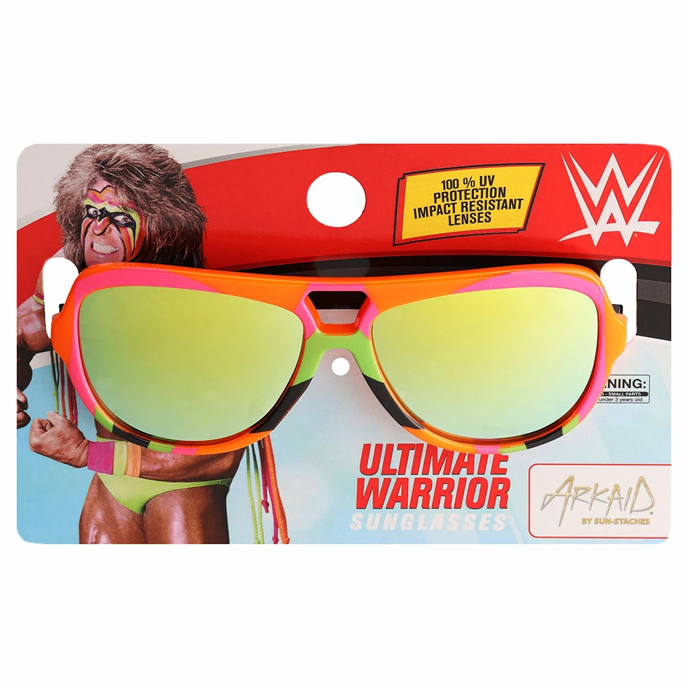Become a WWE Hall of Fame legend with a pair of Ultimate Warrior Arkaid Sunglasses. Atomic Drop on your opponents and Bear Hug your way to victory for that championship belt. Featuring UV400 and impact resistant lenses these stylish shades might not stop a flying chair but they’ll keep your eyes safe from harmful sun rays while you’re in the ring. Great for all ages and made for fun in the sun.