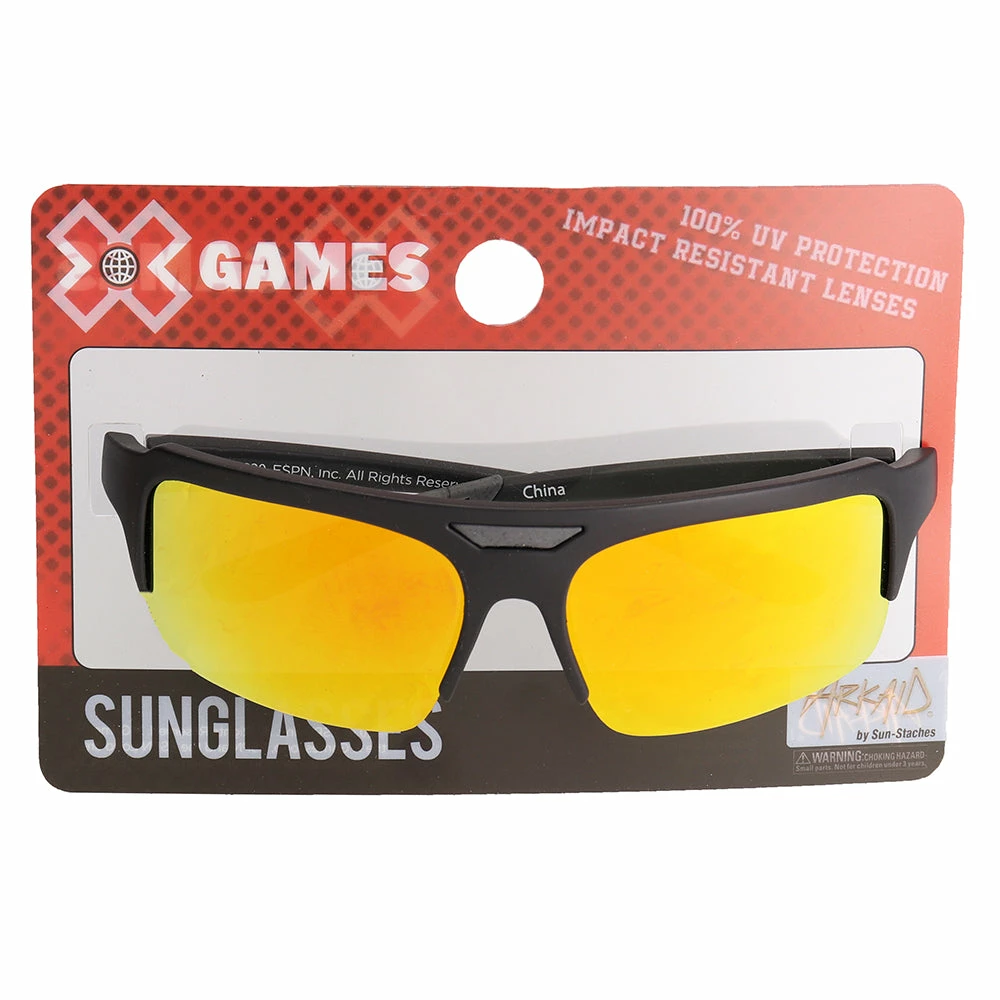 Go for the gold in a pair of X-Games Black and Grey Sports Wrap Arkaid Sunglasses. These stylish shades feature cool black frames and yellow lenses and are the perfect eyewear accessories for shredding in style! Complete with UV400 protective lenses for blocking out harmful UV rays, these are great for staying safe outside. Whether you’re dropping in on the half-pipe or getting big air on the slopes you’ll want some entertaining eyewear. Fun for all occasions and made for fun in the sun.